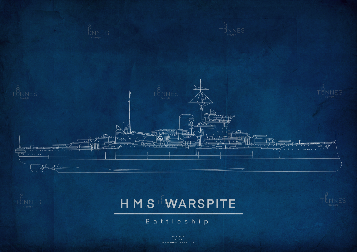A Poster featuring the famous WWII battleships: the HMS Warspite
