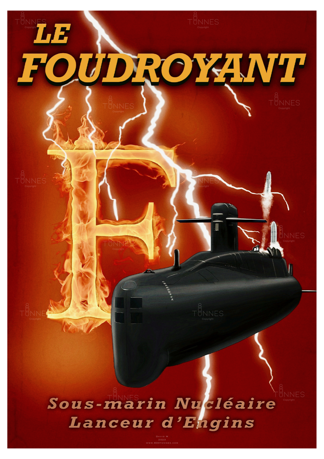 A digital drawing of the French SSBN "Le Foudroyant" inspired by the official tampion of the ship.