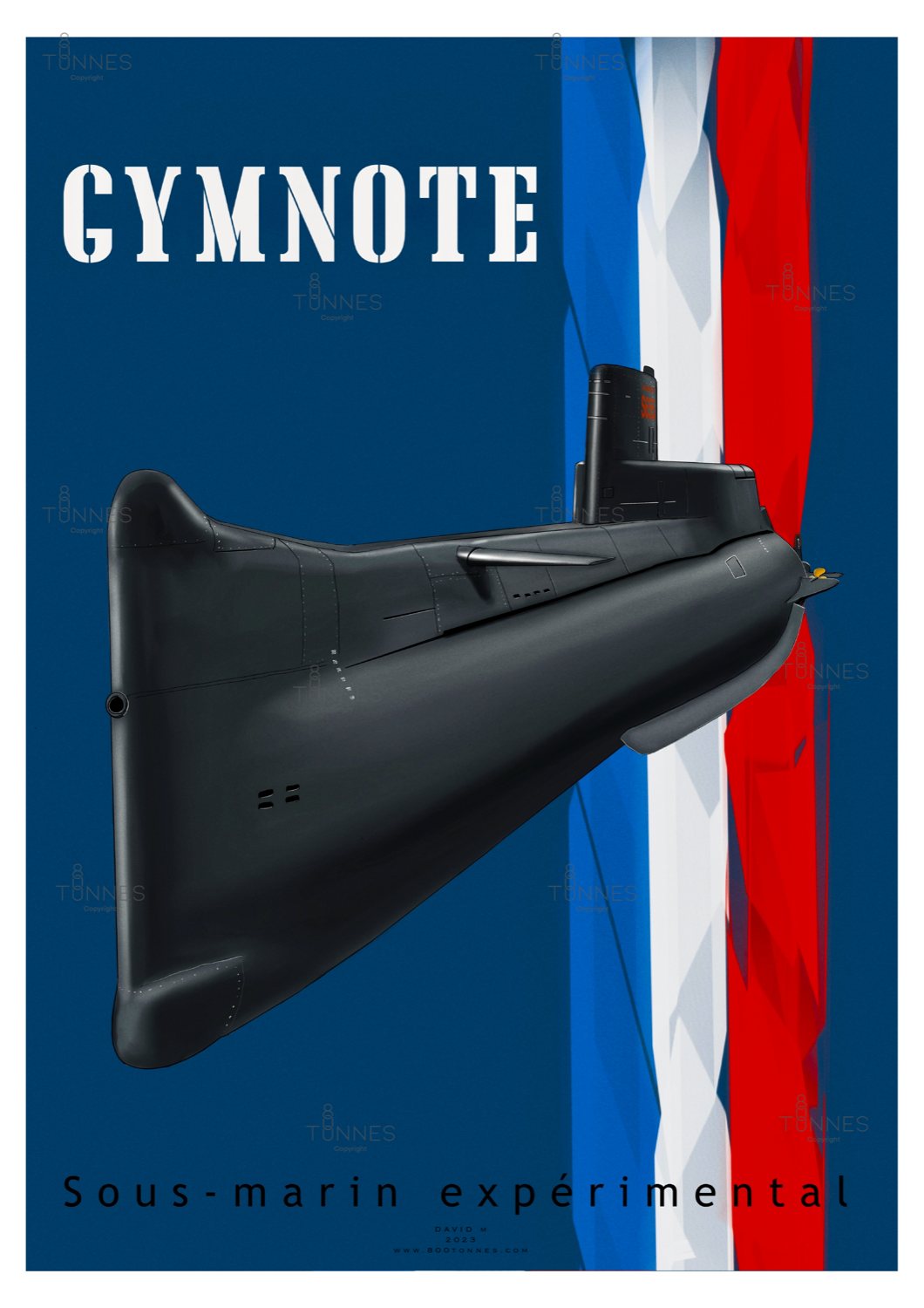 A digital drawing of the Gymnote class French submarine