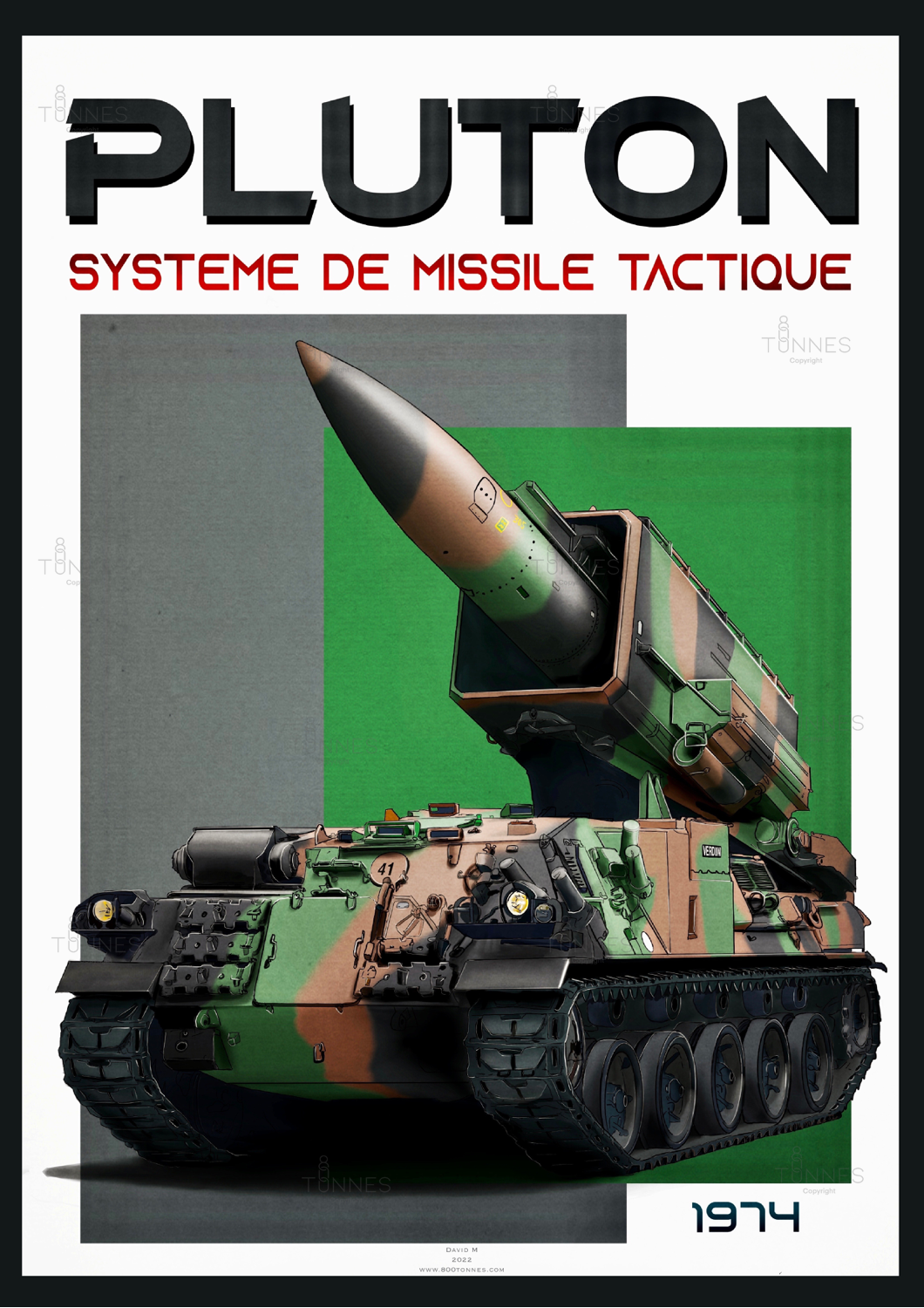 The AMX 30 Pluton was a French short-range nuclear missile system developed in the 1960s. It was based on the chassis of the AMX 30 tank and was designed to be a mobile platform capable of delivering a single 15-kiloton nuclear warhead up to 120 km away. The missile was guided by an inertial guidance system, and its accuracy was improved with a terminal guidance system. The Pluton was in service with the French Army from 1974 to 1993 and was eventually replaced by the more advanced Hadès missile system.