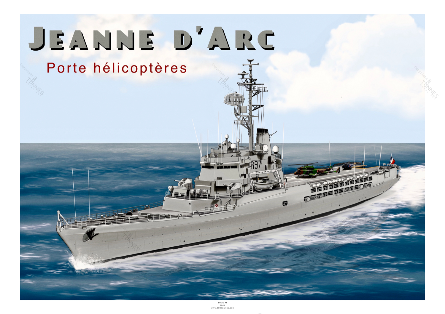180 meters long for a tonnage of 13,000 tonnes loaded, La Jeanne d'Arc was one of the largest ships in the Navy. She was decommissioned in 2010 after more than 40 years of career.