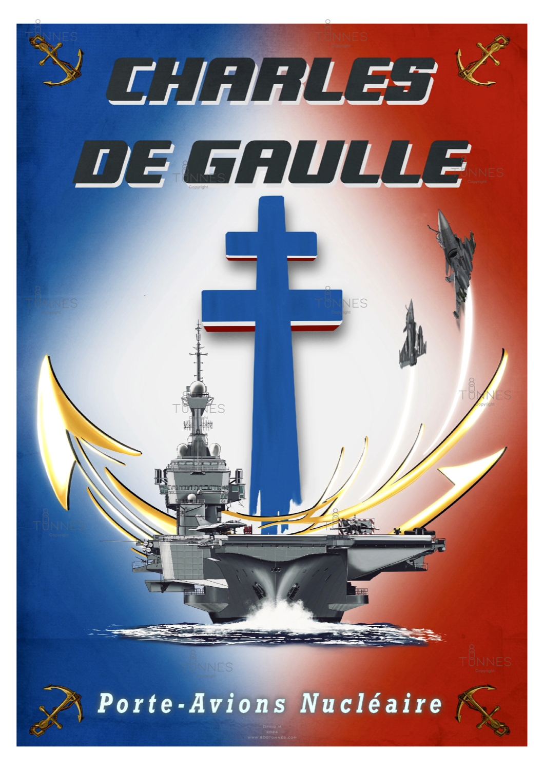A digital drawing of the French air carrier nuclear powered "Charles de Gaulle" inspired by the official tampion of the ship