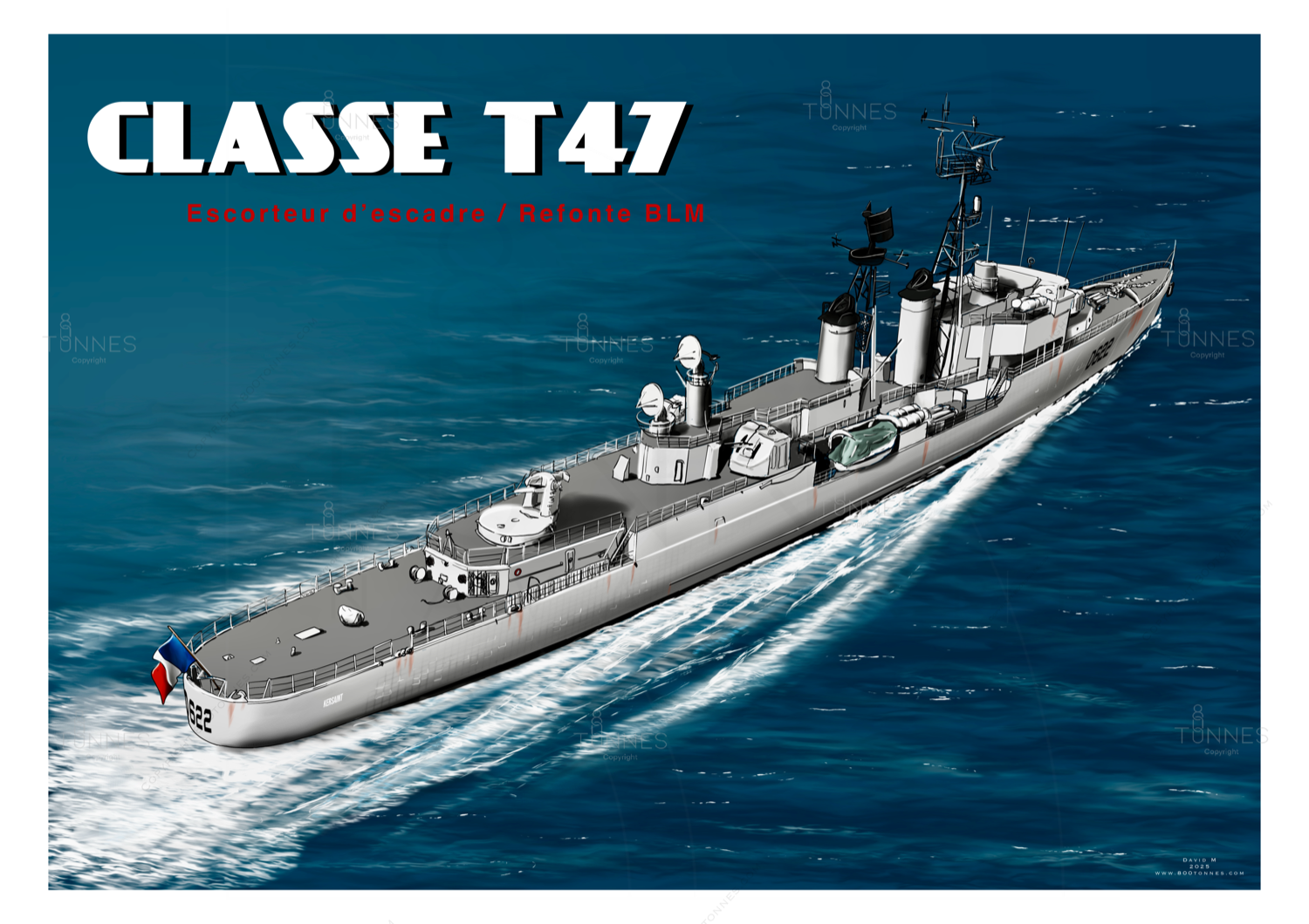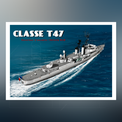 The T 47 class was the first series of French Navy escort ships, built after World War II. Twelve ships were built between 1955 and 1957, derived from the Mogador-class destroyers. Their armament was versatile, suitable for anti-ship, anti-aircraft, and anti-submarine missions. They were designed to escort naval forces, including aircraft carriers.