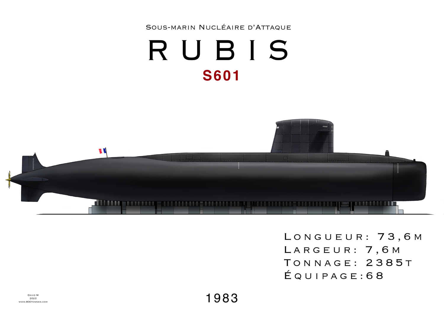 Remplaçant les sous-marins classique de type Agosta, les Rubis sont les plus petits submersibles nucléaires au monde, grâce à une chaufferie nucléaire particulièrement compact. Preuve du savoir faire français, tant en conception qu'en entretien, ils sont encore au service actif alors même que la tête de série approchera bientôt les 40 ans.