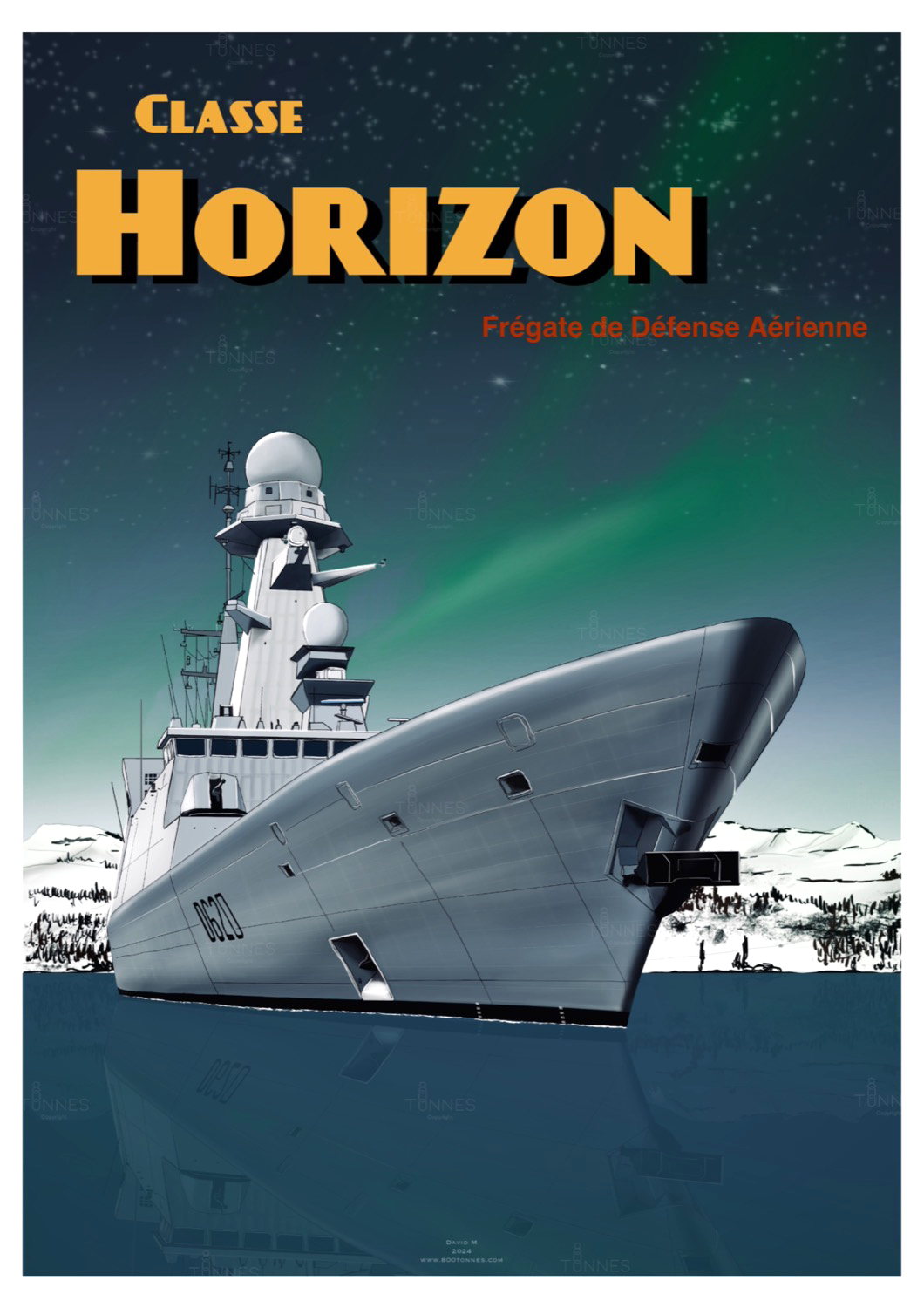 Une affiche Poster façon vintage représentant la frégate française de classe "Horizon"
