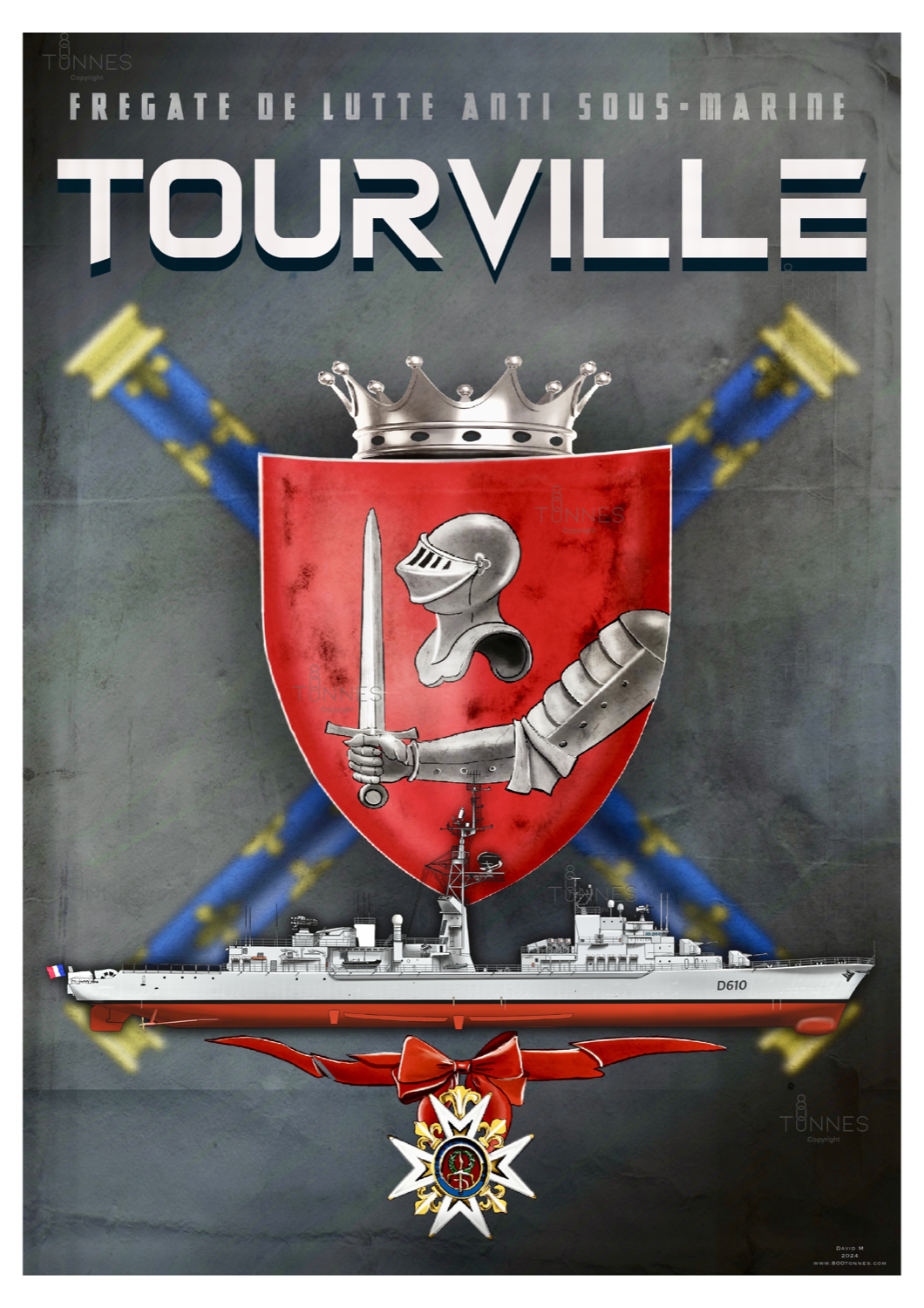 Une affiche Poster façon vintage inspiré par la tape de bouche officielle de la frégate type F67 "Tourville" D610