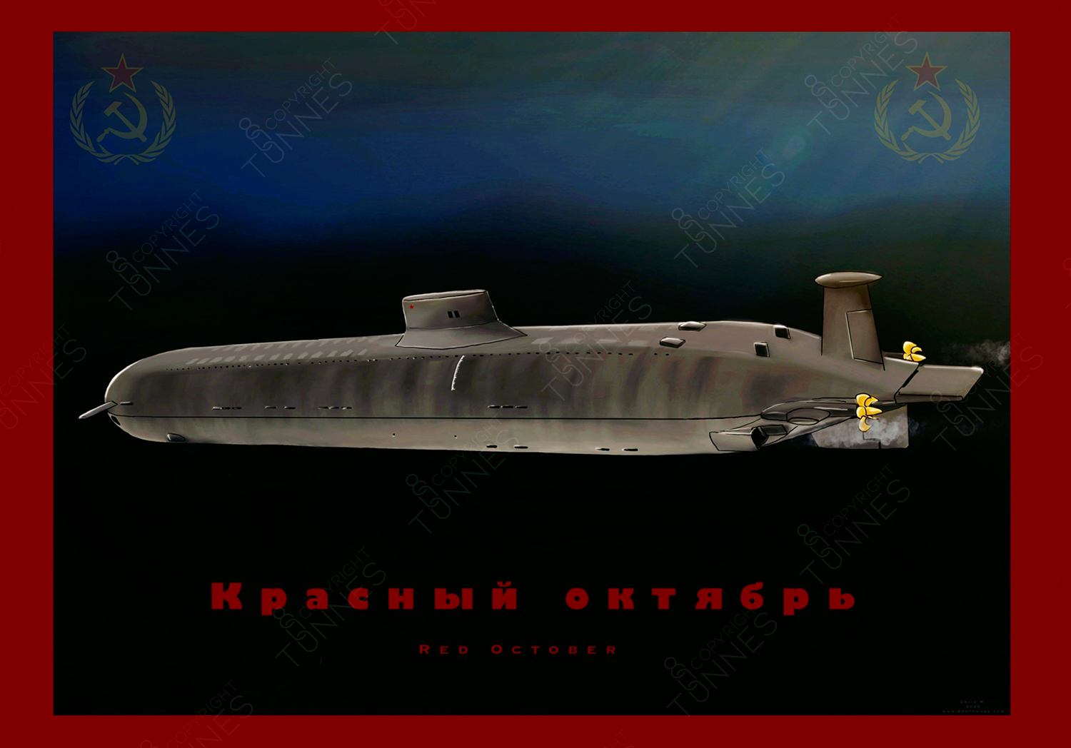 Une affiche Poster du Sous-marin Nucléaire Lanceur d'Engins fictif "Octobre Rouge"