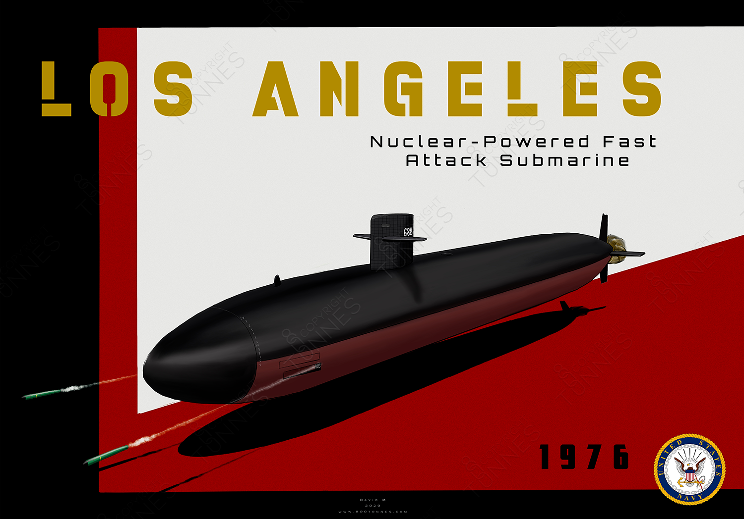 Une affiche Poster vintage représentant un sous-marin Américain de classe "Los Angeles "
