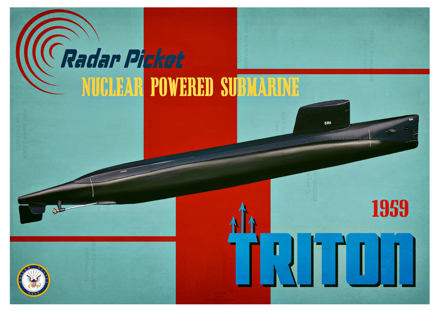 Une affiche Poster vintage représentant le sous-marin Américain USS Triton